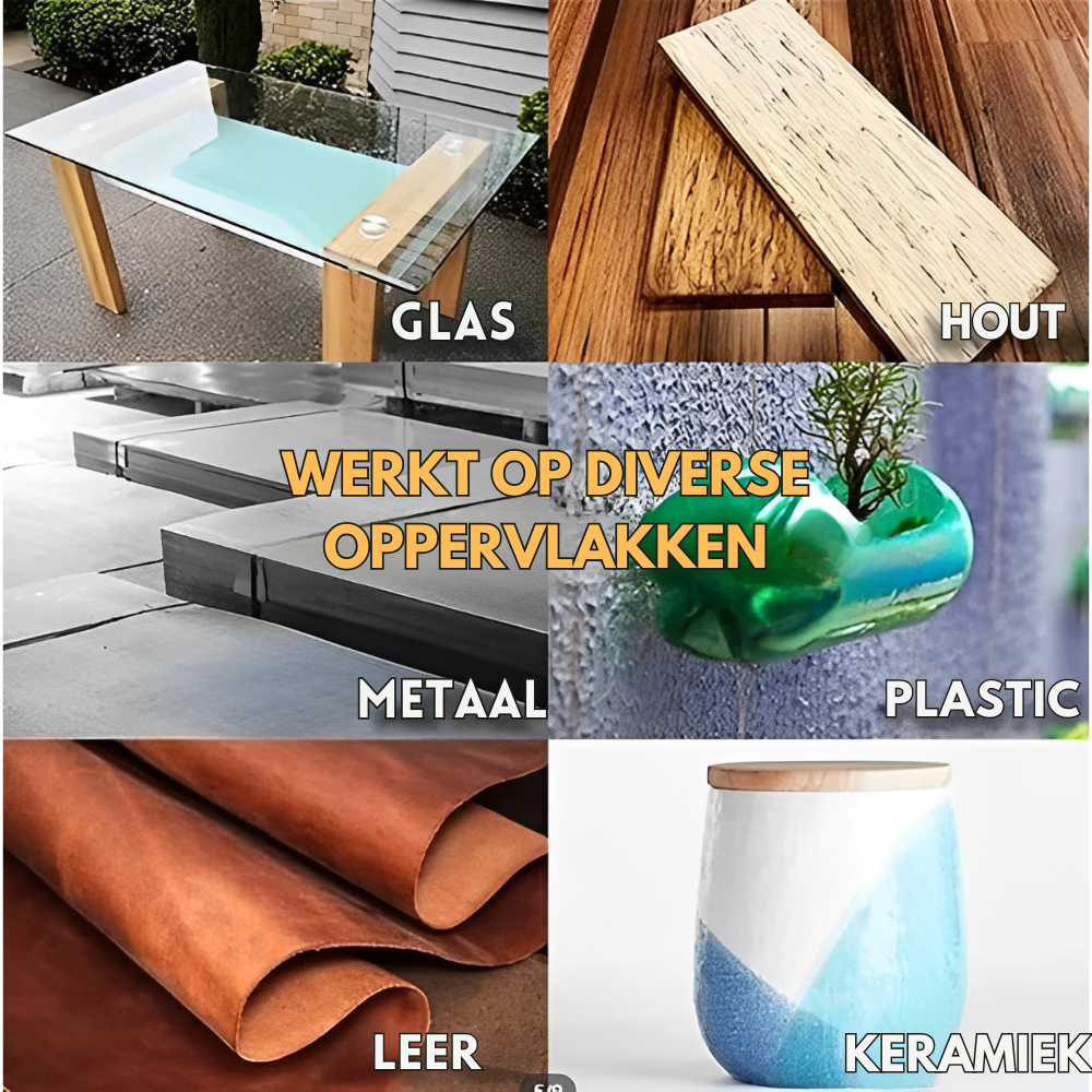 De krachtige formule hecht op vrijwel elk materiaal en zorgt voor een permanente, sterke verbinding.