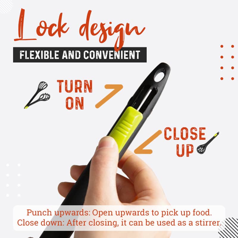 Of je nu snel eieren wil kloppen, noedels wilt opscheppen of slagroom gelijkmatig wilt mengen: de ChefGrip™ is het ultieme 3-in-1 keukenhulpmiddel dat je tijd bespaart en je kookroutine vereenvoudigt. Gemaakt van hoogwaardig nylon, hittebestendig en ontworpen voor dagelijks gebruik – deze slimme tang mag niet ontbreken in je keukenlade.