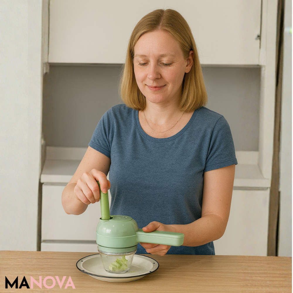 Met deze slimme keukentool bereidt u verse ingrediënten snel, moeiteloos en precies – zonder handmatig snijden of hakken. Snijden, hakken, schillen en pureren gaan in seconden, en na het koken verandert het apparaat in een elektrische afwasborstel voor direct schoonmaken. Ideaal voor wie koken eenvoudiger, efficiënter en leuker wil maken. 🍽️⚡