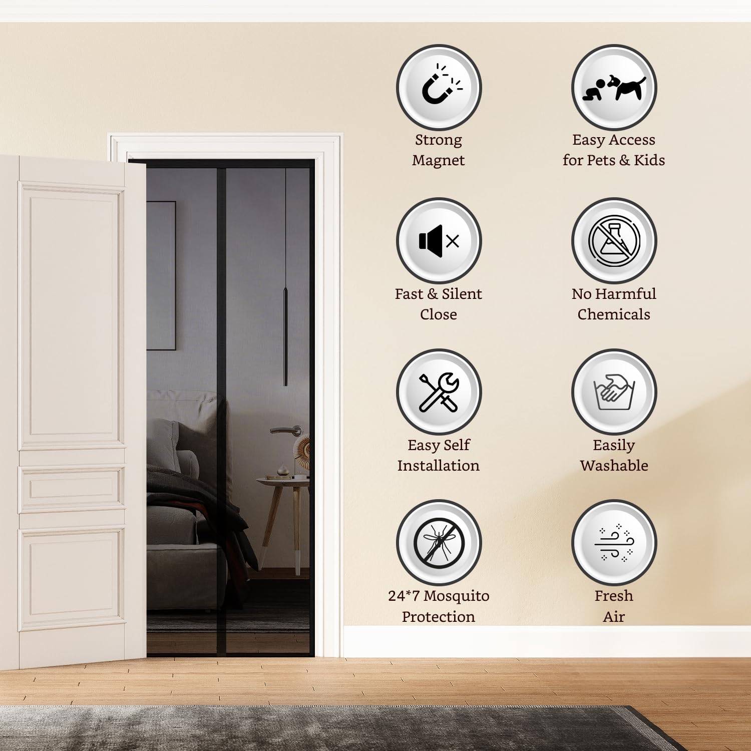 Bestel nu het BugLux® magnetische deurgordijn ! Het is volledig automatisch, gezinsvriendelijk en efficiënt. Bescherming tegen muggen en gemakkelijke toegang dankzij een hoogwaardig gaasdeurnet.