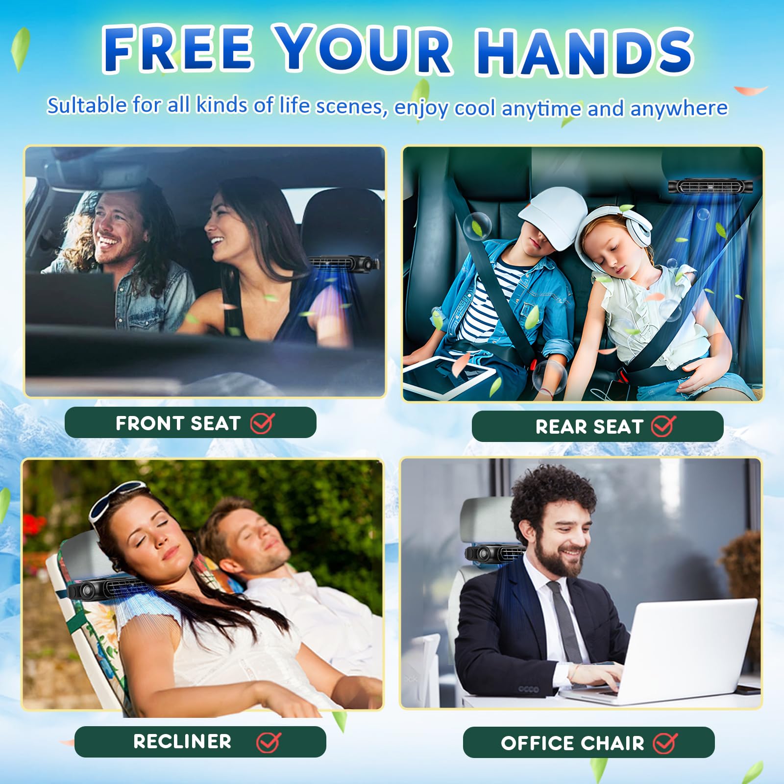 De ventilator kan worden gevoed via een USB-poort, autolader, powerbank of DC-aansluiting . Of je hem nu in de auto of onderweg gebruikt, hij is altijd flexibel en betrouwbaar.