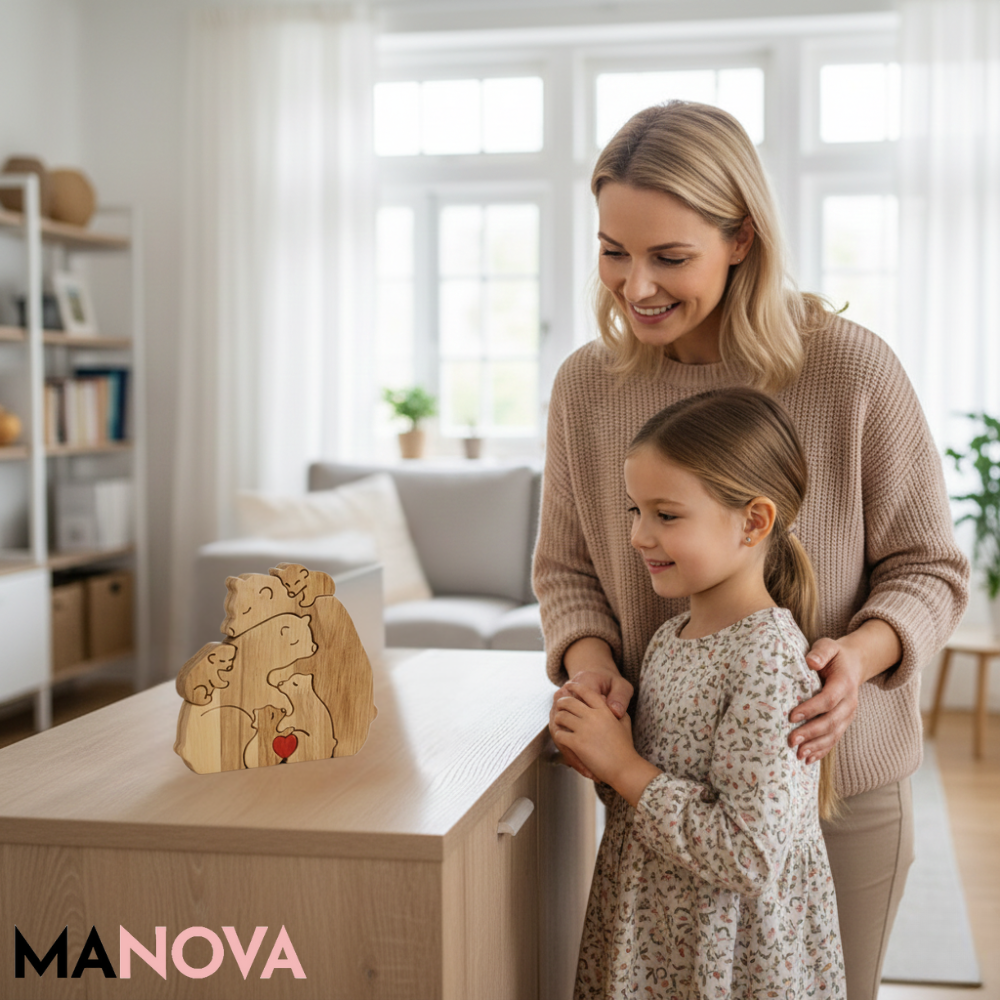 Breng natuurlijke warmte, rust en betekenis in uw huis met een decoratief stuk dat direct een gevoel van thuis oproept. Dit handgemaakte houten ornament staat symbool voor liefde, saamhorigheid en verbondenheid. Perfect voor wie zijn interieur wil verrijken met authenticiteit en een persoonlijk verhaal. 🐻🤍