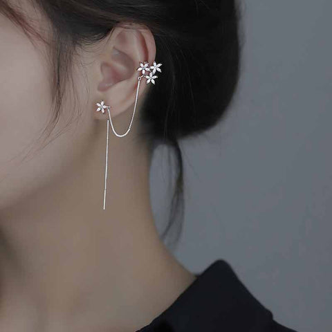 Deze nieuwe versie met ultragladde en zachte draadinsteker met speciale technologie. Je voelt zelfs niets als je ze aantrekt. Je zult niets vinden zoals onze Blossom Love Dangle Ear Threader met manchet - het is gewoon zo uniek en mooi! Je zult verdwalen in de prachtige zirkonia's. Verkocht als enkelvoudig (alleen rechteroor).