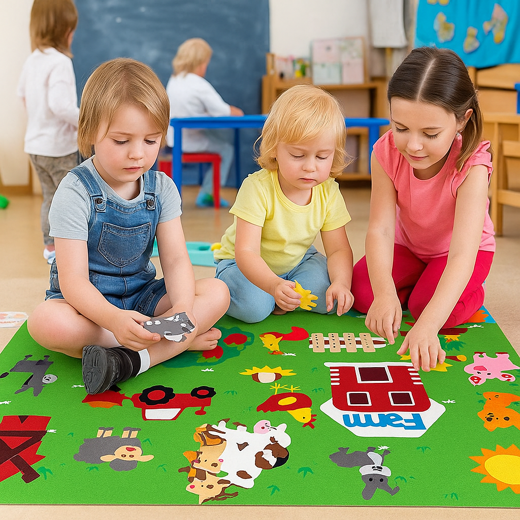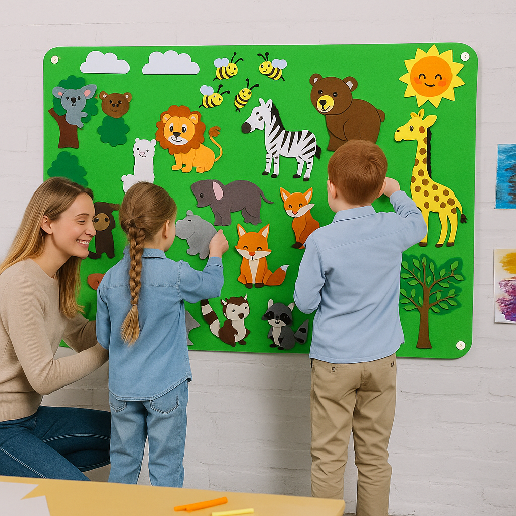 Het duurzame en herbruikbare viltmateriaal zorgt ervoor dat kinderen keer op keer nieuwe verhalen kunnen maken. Of het nu thuis is of onderweg, het plezier stopt nooit!