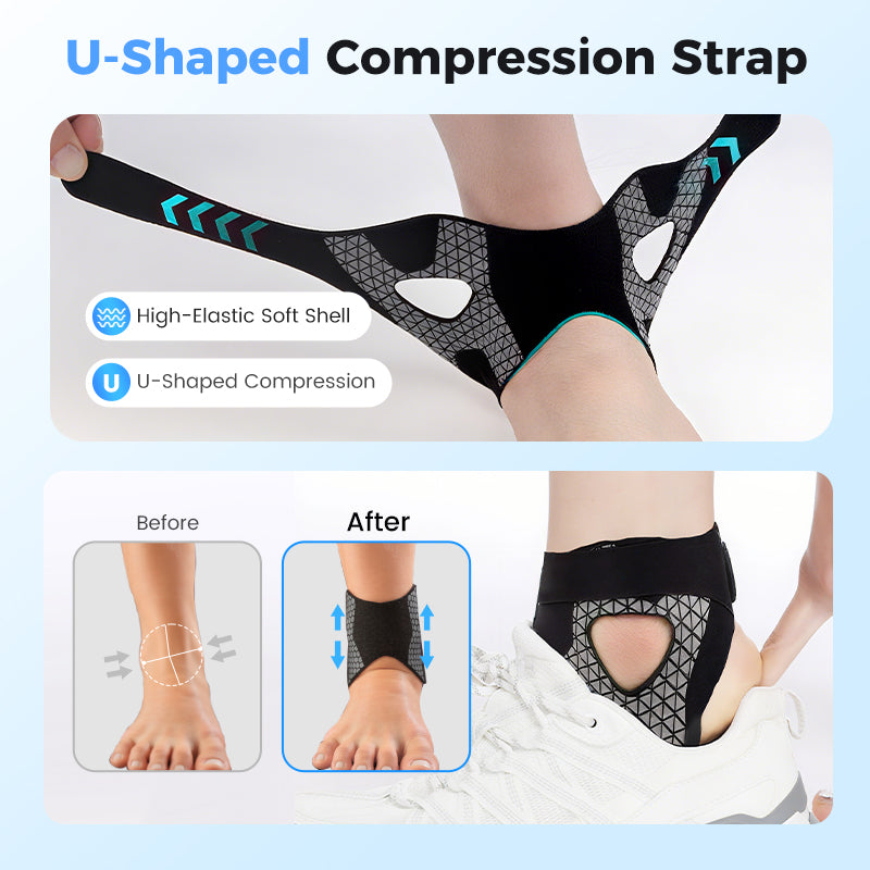 De FlexiGuard enkelbrace biedt betrouwbare ondersteuning en bescherming tijdens het sporten, trainen en dagelijkse activiteiten. Dankzij het elastische, ademende materiaal past hij zich perfect aan elke voetvorm aan en verlicht hij de druk op uw gewrichten bij elke beweging.