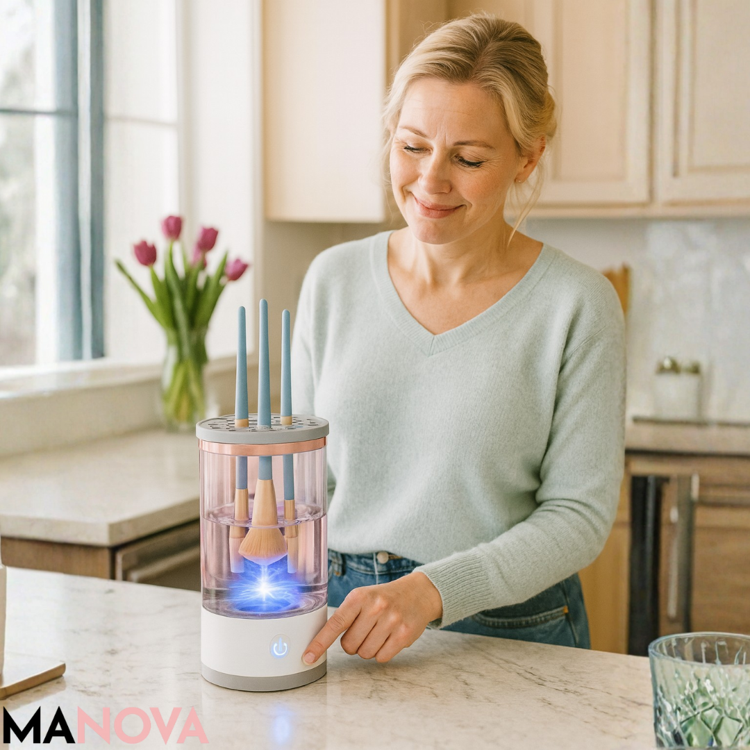 Met GlamClean maak je je make-upkwasten snel, grondig en voorzichtig schoon – voor een egale huid en een hygiënische, stralende look. Het slimme 3-in-1 ontwerp reinigt, droogt en bewaart je kwasten met één druk op de knop. ✨💄