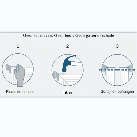 Dit simplistische en gepatenteerde ontwerp biedt de stabiliteit, stijl en installatiegemak die u in uw huis zou willen gebruiken. Bewezen de snelste, sterkste en eenvoudigste manier om uw gordijnen op te hangen.