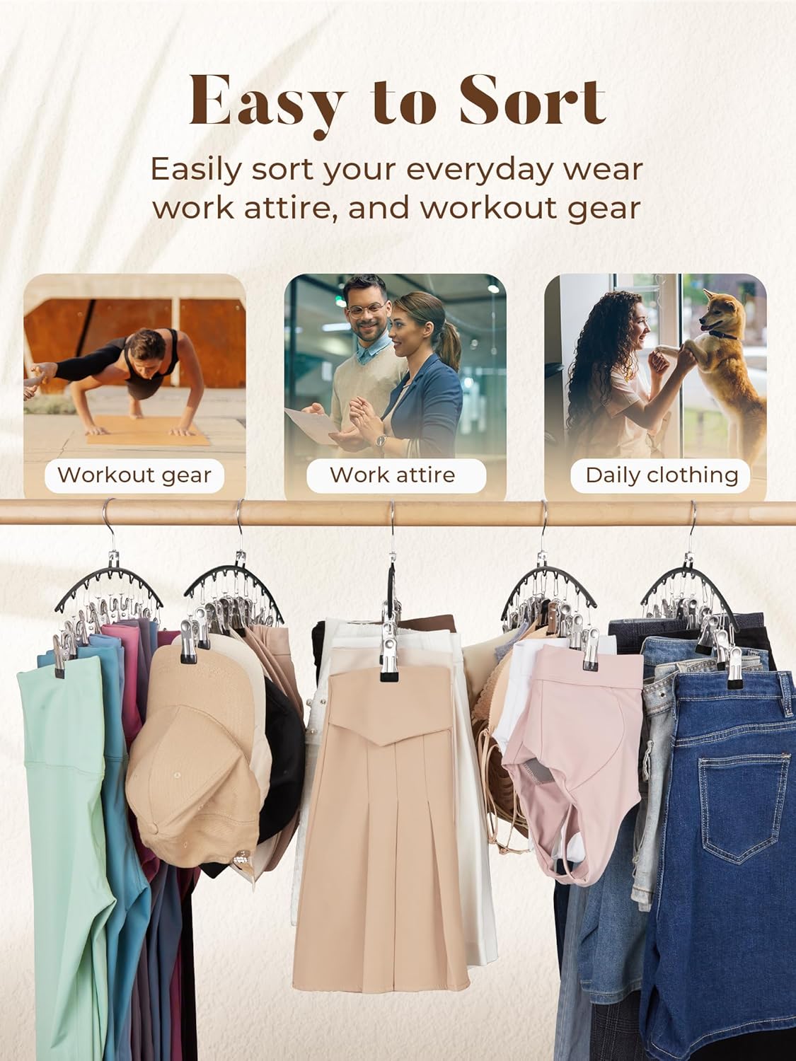 【Perfect cadeau】De yoga broekhangers met clips zijn een fantastisch cadeau voor je vrienden, familie, buren en collega's. Met de garderobe-organizer kunnen ze hun garderobe netjes en gemakkelijk opruimen en accessoires vinden en kiezen terwijl ze zich klaarmaken.