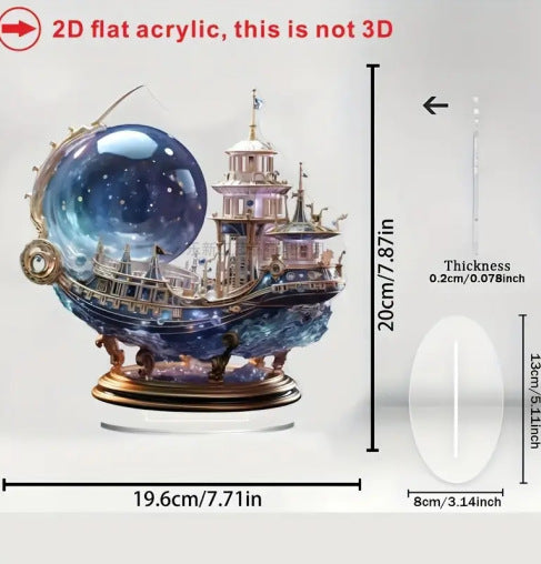 De combinatie van boot, maan en kasteel creëert een betoverende, bijna dromerige sfeer - perfect voor iedereen die van liefdevolle details en creatieve woonaccessoires houdt.