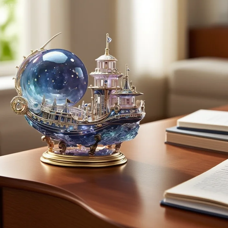 Met de LunaDream tafeldecoratie haal je een vleugje fantasie en maanverlichte romantiek in huis. Het unieke ontwerp met een maan, sprookjeskasteel en gebogen bootvorm transformeert elke kamer in een kleine droomwereld – ideaal voor op een bureau, plank of vensterbank.