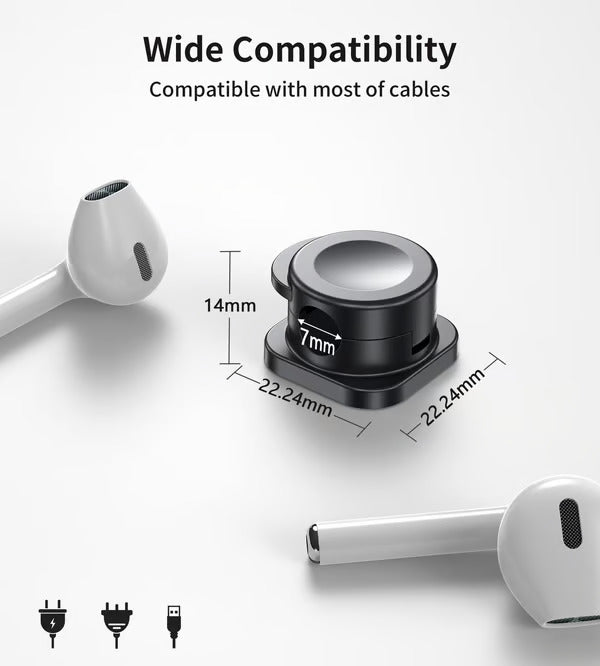 De klemmen zijn gemaakt van elastisch, duurzaam siliconen dat uw kabels niet beschadigt . Ze zijn geschikt voor oplaad-, USB-, audio- en stroomkabels.