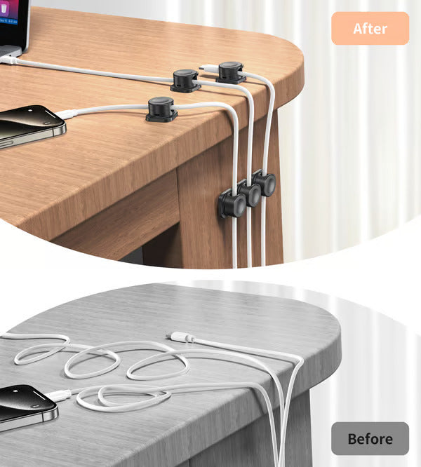Onze magnetische kabelklemmen houden je werkplek, bureau, keuken of werkplaats in een mum van tijd opgeruimd . De slimme combinatie van sterke magneten en flexibele siliconen houdt je kabels waar je ze nodig hebt – zonder te boren, schroeven of lijmresten achter te laten .