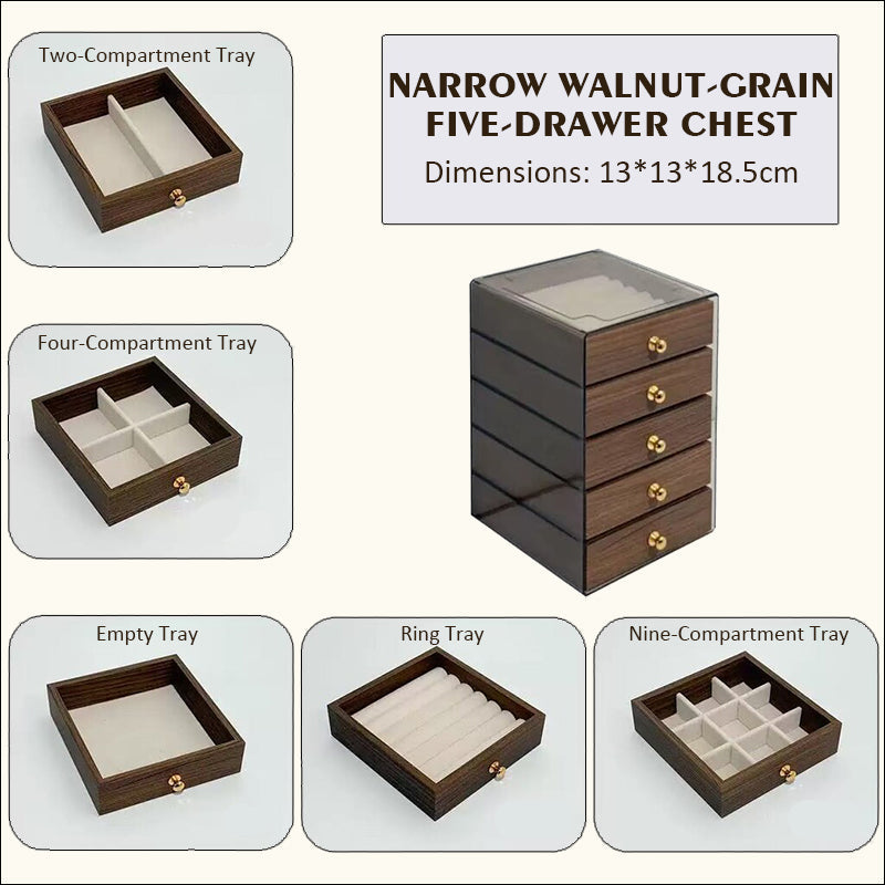 Opslagniveaus: Vijf diepe lades met individueel combineerbare inzetstukken voor alle soorten sieraden