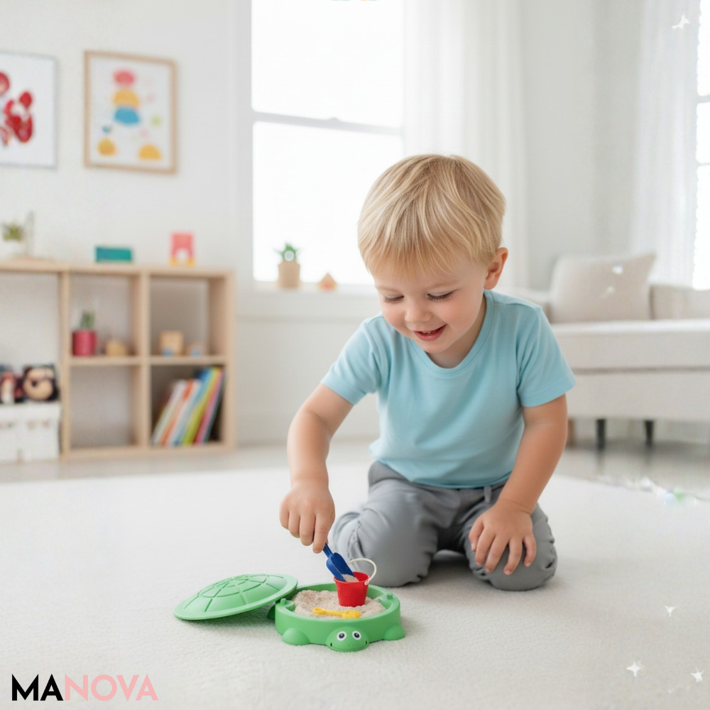 Breng vrolijkheid, creativiteit en schermvrij speelplezier samen in één schattig ontwerp. De MiniShell schildpadzandbak nodigt uit tot fantasierijk spelen, waar je ook bent – binnen of buiten. Ideaal voor ouders die hun kind veilig, rustig en creatief willen laten ontdekken. 🐢🌈