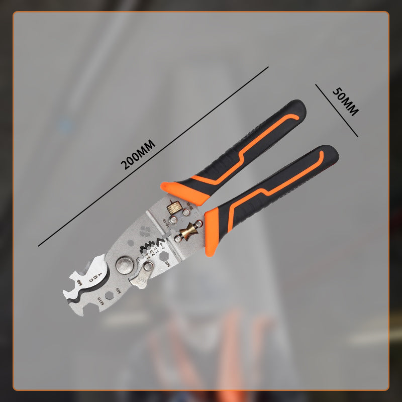 MULTIFUNCTIONEEL ONTWERP: Met dit veelzijdige gereedschap kun je gemakkelijk kabels pellen, knippen, krimpen, schroeven draaien, breken, schalen en scheiden. Ideaal voor elektriciens en doe-het-zelvers, het vereenvoudigt je gereedschapskist door meerdere functies te combineren in één betrouwbaar apparaat, waardoor de efficiëntie van elk project toeneemt.