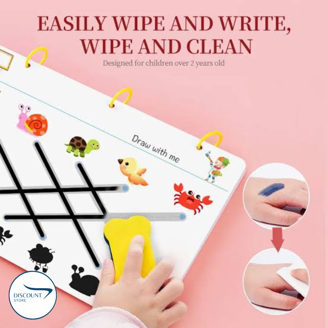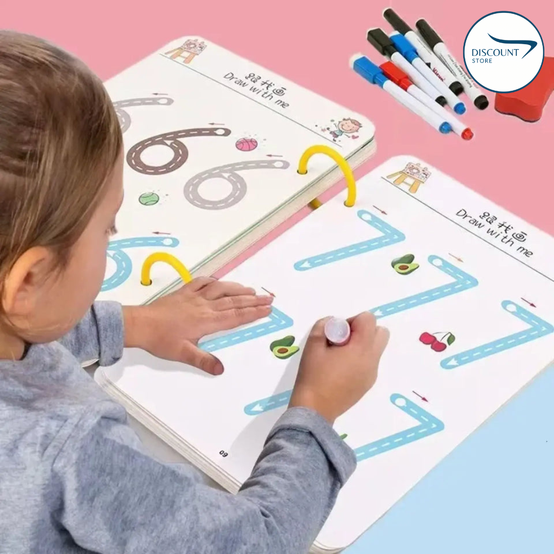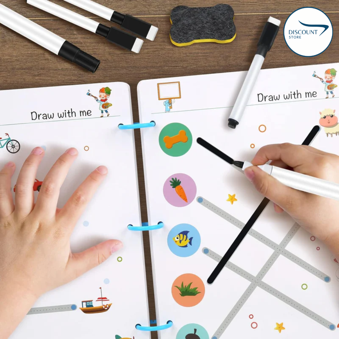 Met het herbruikbare kalligrafieboekje kunnen kinderen meerdere keren oefenen met overtrekken.