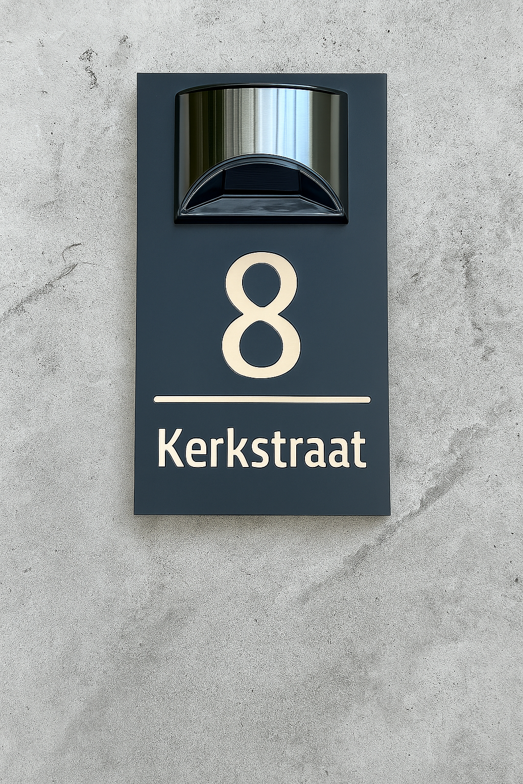 Het zwevende ontwerp van het bord zorgt voor een prachtige visuele illusie, waardoor je huisnummer of naam elegant lijkt te zweven. Dit maakt het een aantrekkelijk middelpunt dat direct de aandacht trekt.