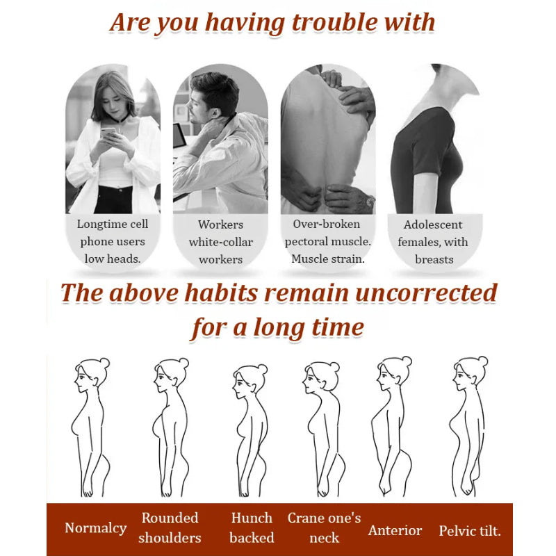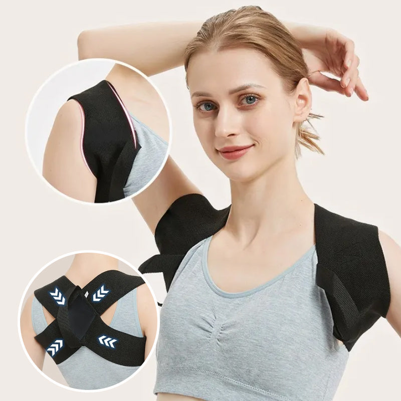 De ergonomische correctiebanden trekken je schouders zachtjes naar achteren. Dit vermindert spierspanning en zorgt voor merkbare pijnverlichting – ideaal na een lange werkdag.