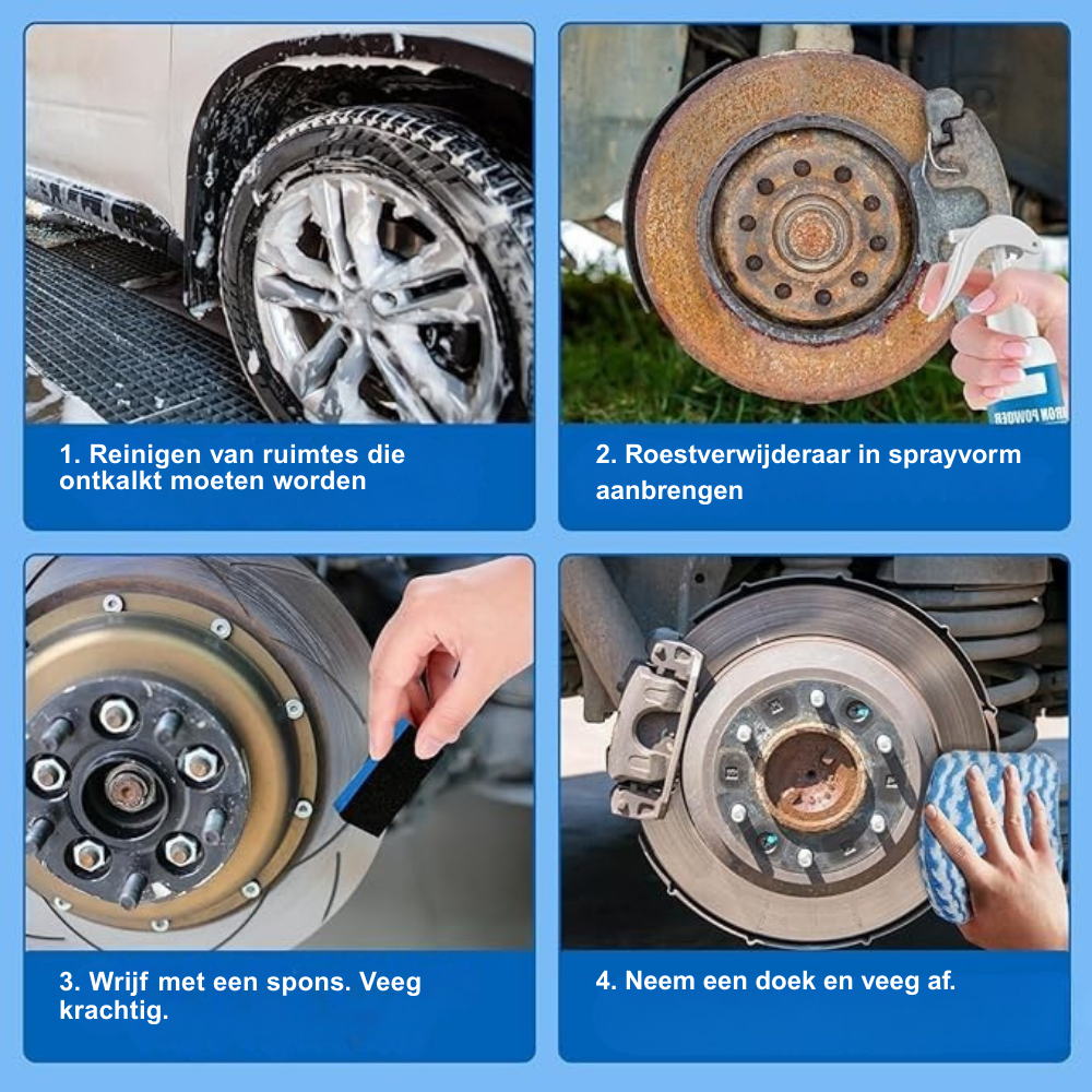Herstel de glans, waarde en het vertrouwen van uw auto in enkele minuten door hardnekkige roestplekken moeiteloos te verwijderen. Deze snelwerkende spray onthult schoon metaal eronder en biedt langdurige bescherming om te voorkomen dat roest terugkomt. Ideaal voor iedereen die moeiteloze resultaten en een vlekkeloze afwerking op metalen oppervlakken wil. 🚗✨