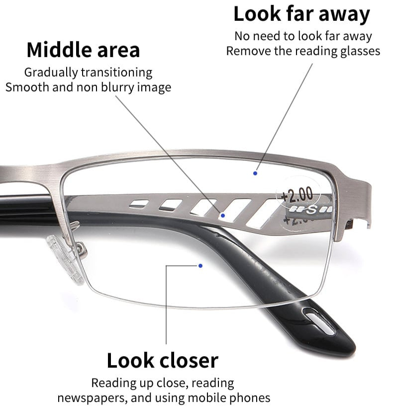 De multifocale lens biedt helder zicht in alle richtingen : tijdens het lezen, kijken naar een scherm of in de verte. Op- en afzetten is niet meer nodig.