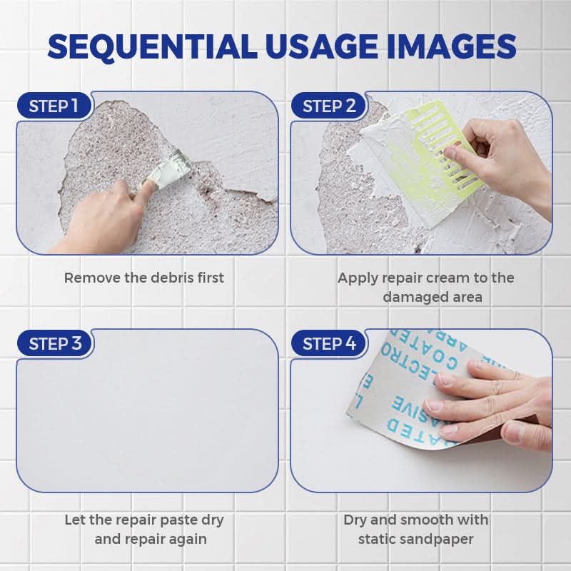 VEELZIJDIG EN GEBRUIKSVRIENDELIJK: Deze eenvoudig aan te brengen pasta is perfect voor diverse muurreparaties. Hij werkt naadloos op een breed scala aan oppervlakken en lost meerdere muurproblemen op met één enkele applicatie.