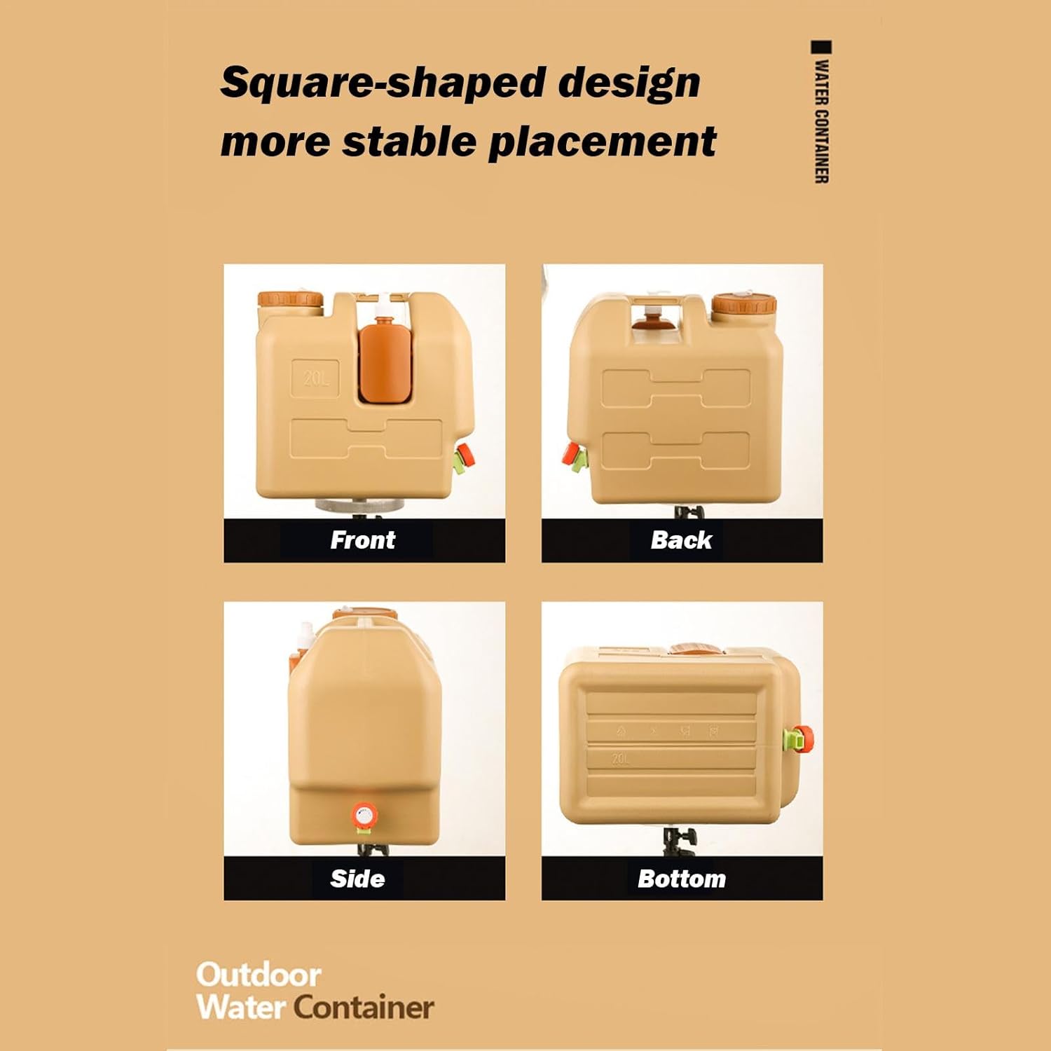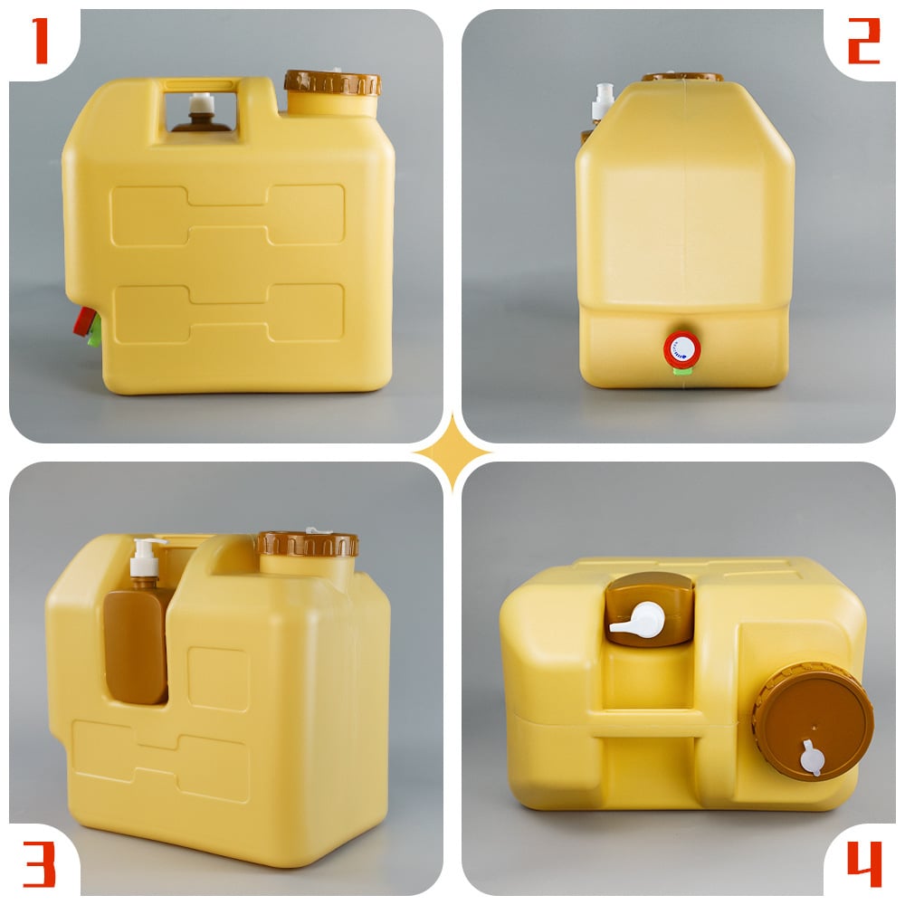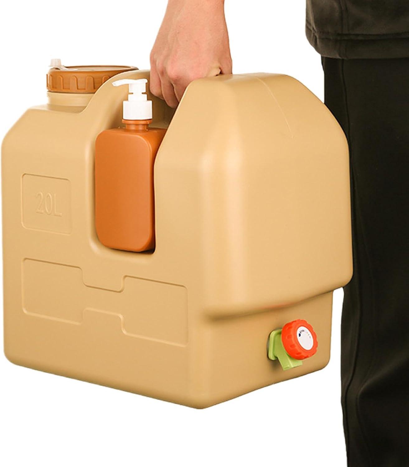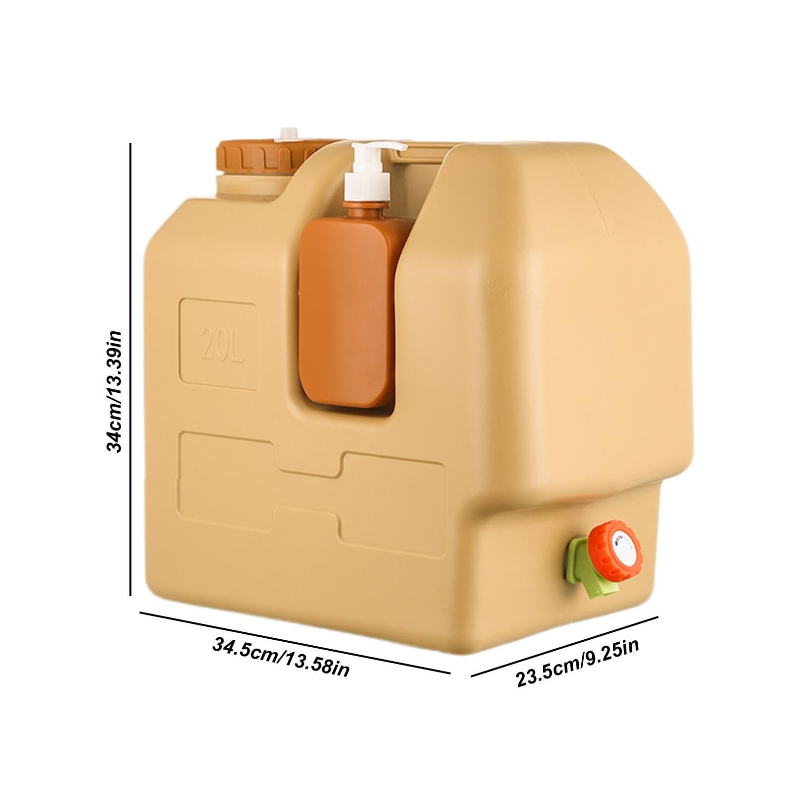 Ergonomisch handvat: Dit campingwaterreservoir heeft een ergonomisch handvat met comfortabele greep, is makkelijk mee te nemen, bespaart ruimte en biedt gemakkelijke toegang tot water, compleet met een afneembare 500 ml handzeepdispenser voor hygiëne buitenshuis.